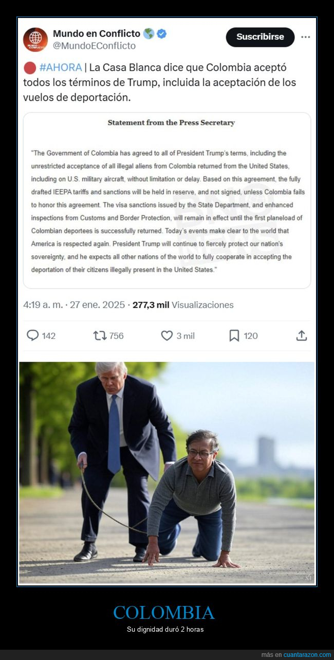 Colombia nunca negó los vuelos, lo que dij oes que no se tratara como criminales, y así se ha hecho.