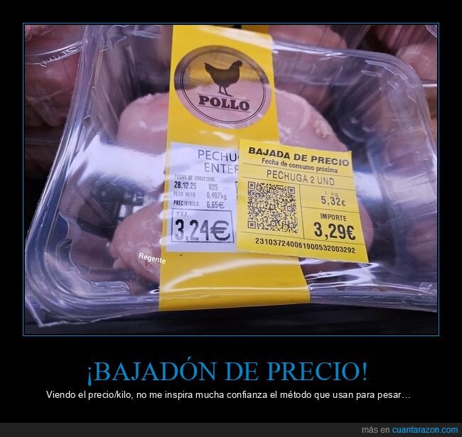 Te cuento lo que ha ocurrido: Mientras hacían la bajada de han equivocado de etiqueta (una es pechuga entera y la otra pechuga dos unidades) por eso está diferente el precio del kilo. Un error de un/a trabajador/a a la hora reetiquetar.