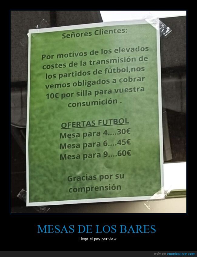 300€ mensuales debe pagar un bar para tener el fútbol.