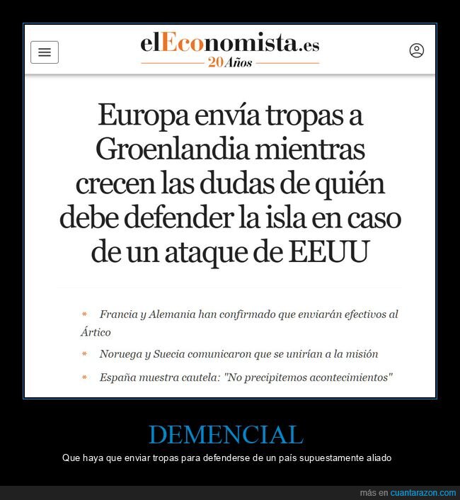 "envía Tropas"....enviaron a 20 personas siendo que Estados Unidos tiene bases militares en Groenlandia desde hace 80 años