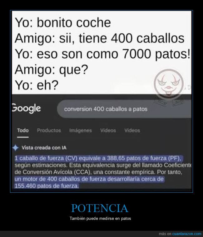 Abajo: 400 caballos son 155.460 patos.