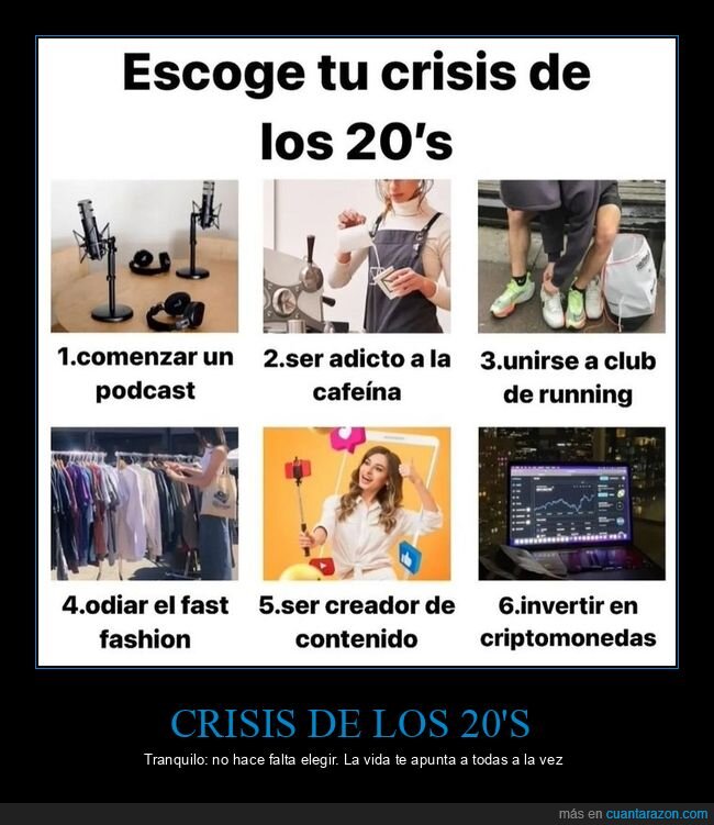 Ninguna idiota, solo trabajar y crecer como persona. Creador de contenido JAJAJAJJAJA crisis de los 20, como si hubiera una crisis a esa edad, por dios